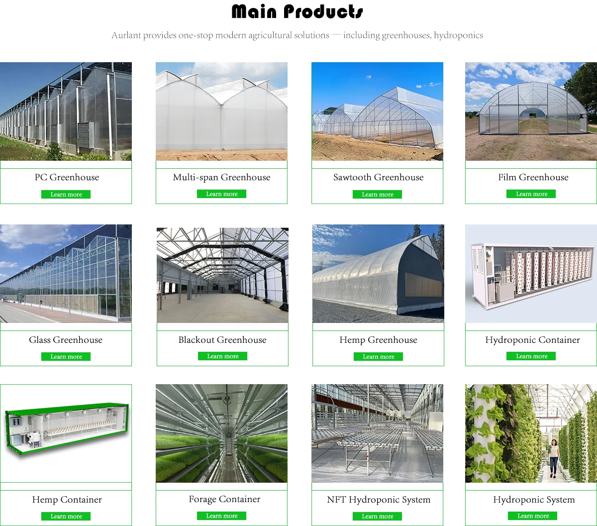 מוצרים עיקרייםחממה, מערכת הידרופונית, מפעל שתילה מכולות